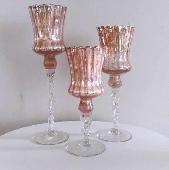 Pink mercury glass pedestal candle holders. Check spelling or type a new query. We did not find results for: Maybe you would like to learn more about one of these?